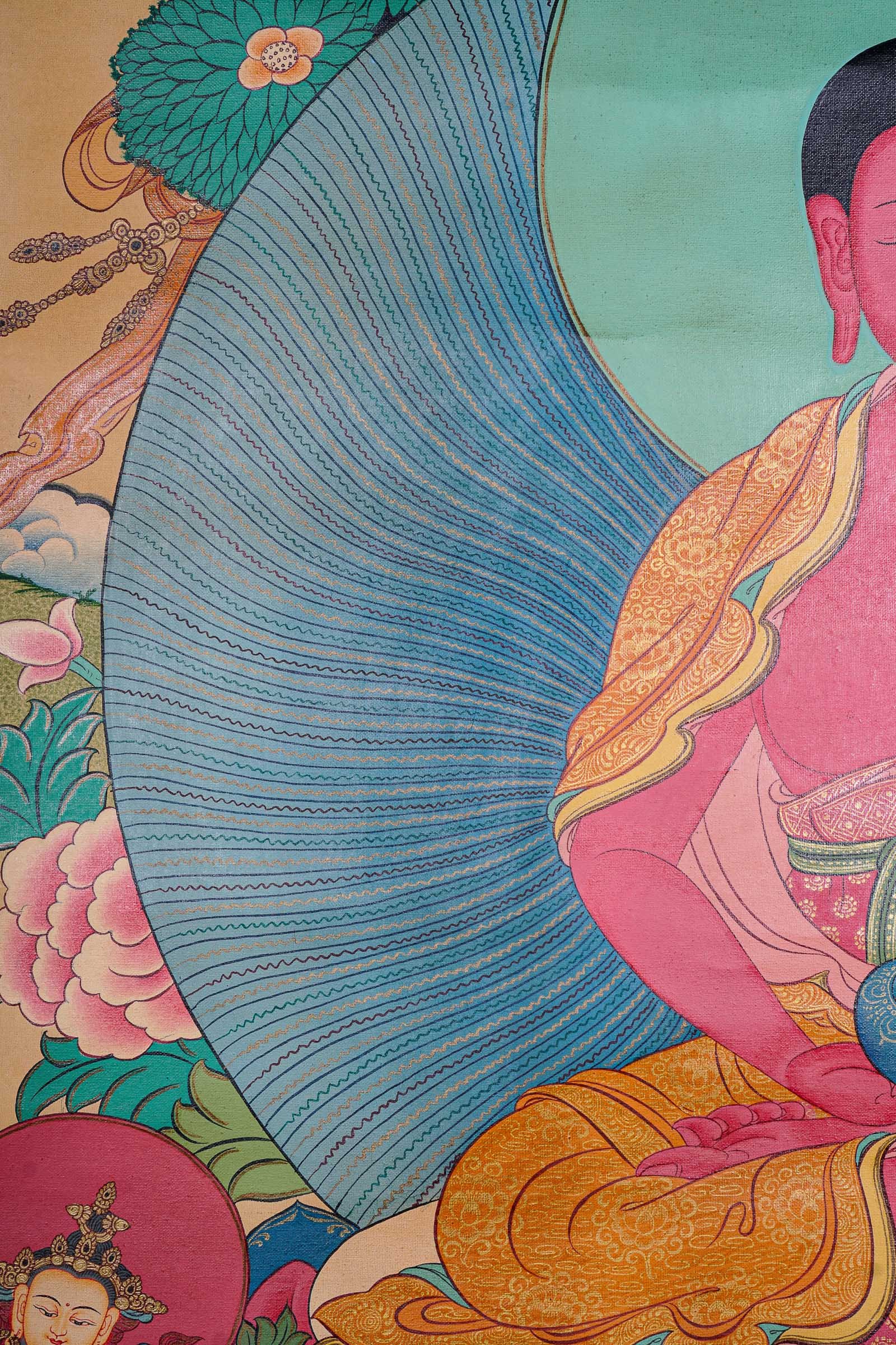 Antique Amitabha Buddha Thangka Paintings are Handpainted Tibetan artwork on cotton canvas that are highly valued for their historical, artistic, and spiritual significance. They offer profound spiritual teachings and represent the rich tradition of Buddhist art while serving as powerful tools for meditation and spiritual growth.