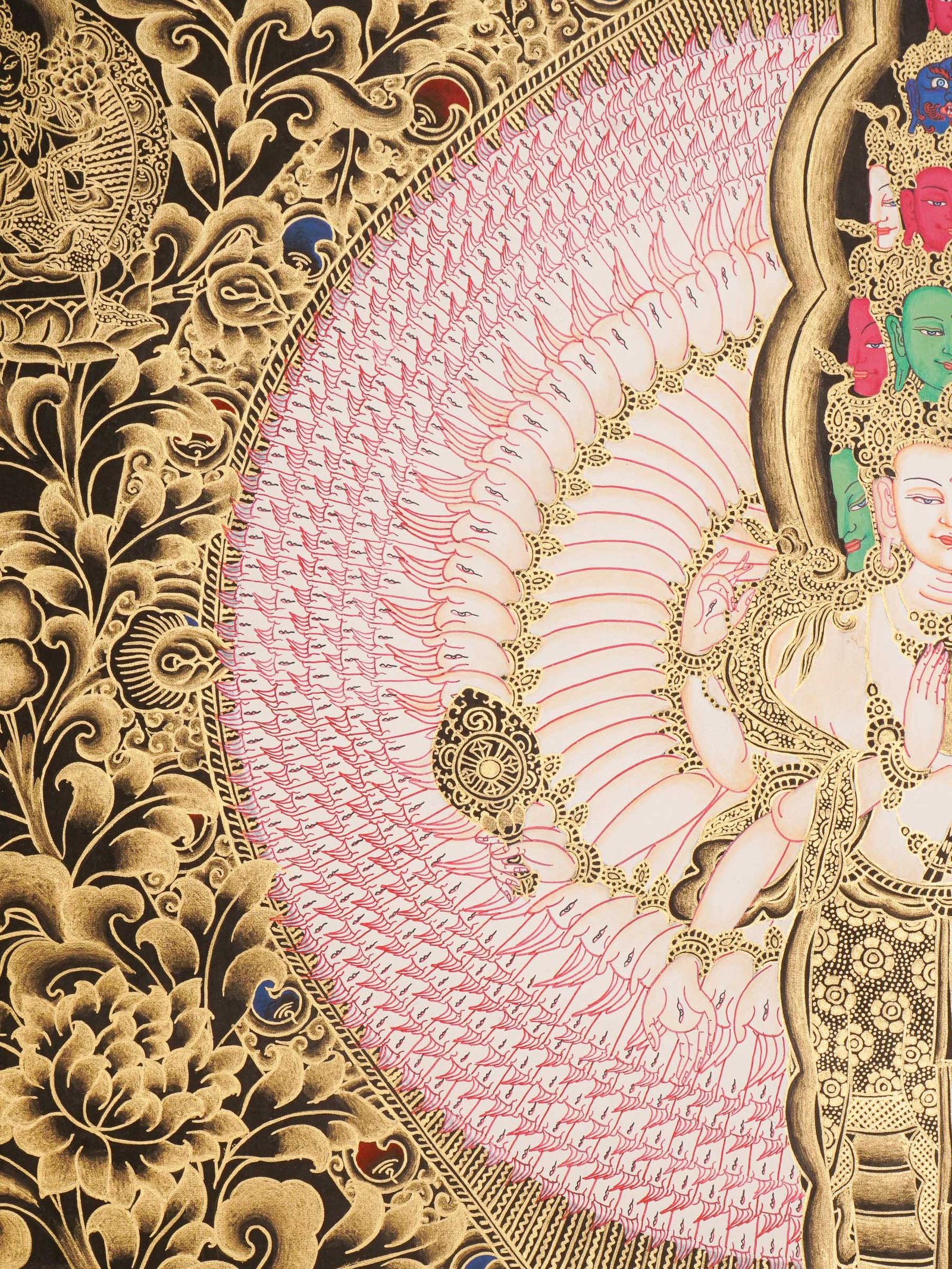 - Artistic Style: Expert Thangka artists use precise brushwork and vibrant pigments to capture the divine essence of Avalokiteshvara, maintaining harmony and balance through geometric principles.