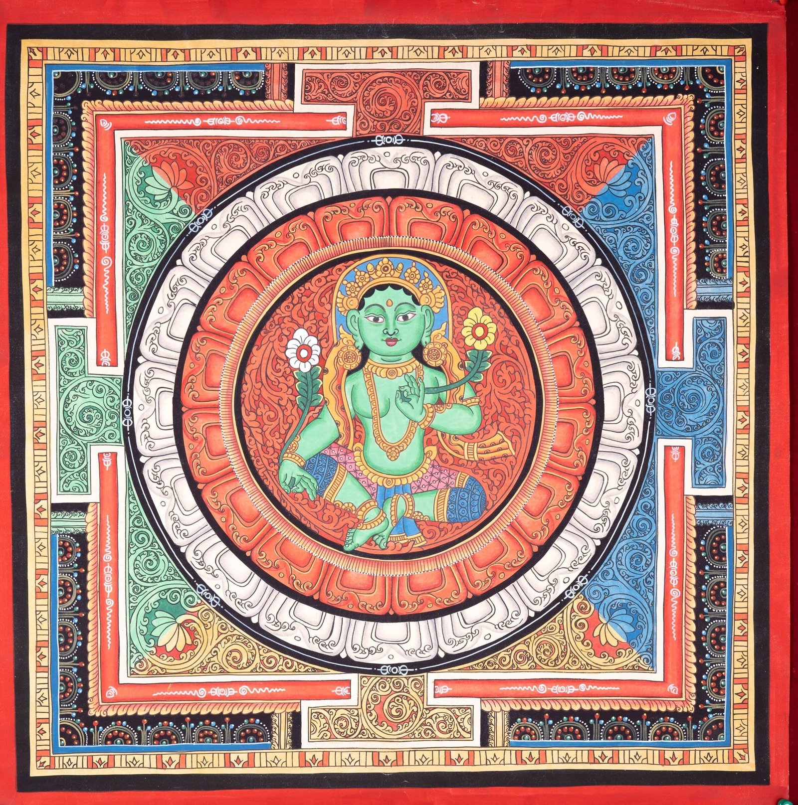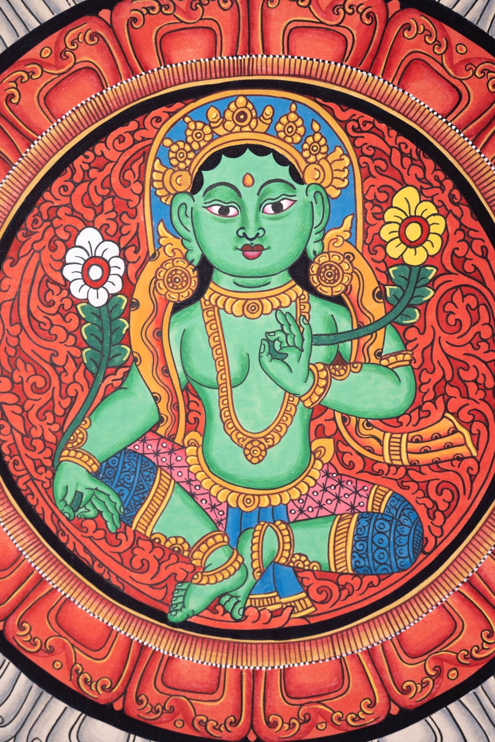 Beautiful Green Tara Mandala Painting