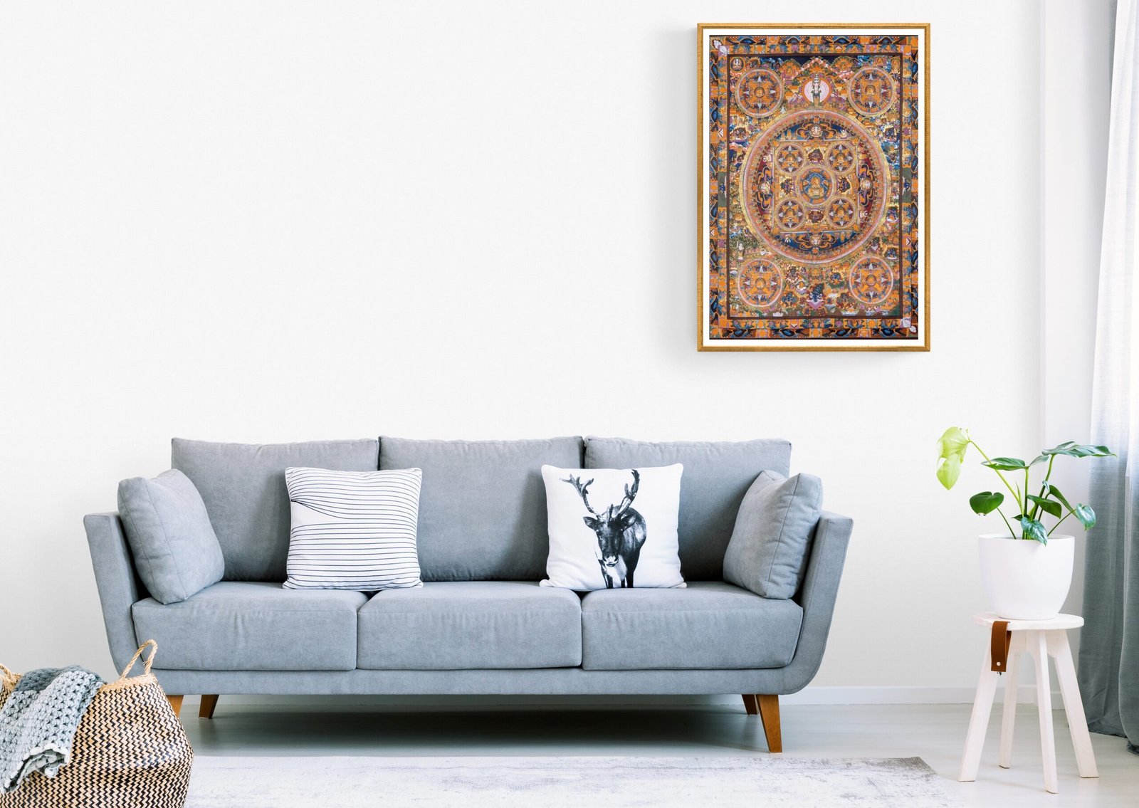 Thangka Painting of a Buddha Mandala for Spirituality, Meditation or for your home. All Thangka Paintings at Lucky Thangka are genuine hand painted from Nepal by highly skilled lama artists. Painted on cotton canvas using natural stone color and other materials like gold, silver other semi-precious minerals. The Buddha Mandala can be a great tool for meditation to transform and purify our Body, Speech and mind. The imagery depicted in Tibetan paintings provides a guide for the elaborate visualizations that one does in Tibetan Buddhist practice. In Tibetan homes and monasteries, thangkas are considered sacred objects and are often placed above shrines.