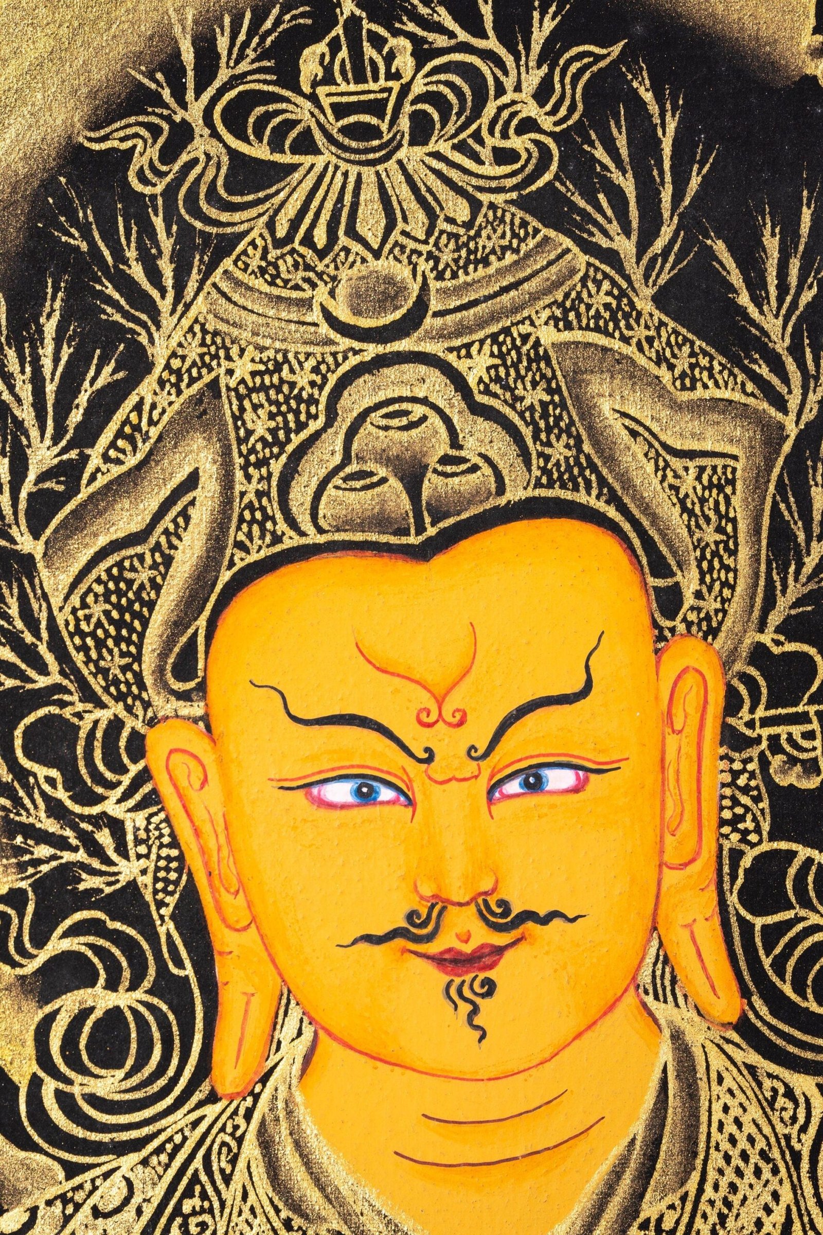 In Tibetan, Guru Padmasambhava is generally referred to as Guru Rinpoche, which means “precious master. Guru Rinpoche is a totally enlightened being, a fully awakened one, a buddha. He did not become enlightened gradually, or start practicing the teachings of Buddha Shakyamuni and eventually achieve enlightenment. Guru Rinpoche incarnated as a fully enlightened being. Through his form, primordial wisdom manifests in the world to benefit all sentient beings. Guru Rinpoche is the archetypal perfect teacher: a role model. In him are to be found all the skills required to guide others. First and foremost, he attains mastery himself and only teaches others that which is perfectly assimilated in his own being, through having gone to the correct source, practised the teachings assiduously, become a worthy lineage-holder and been empowered as a guru. He embodies all the personal qualities of kindness, patience, tolerance as well as the more dynamic ones of knowing when to show force and wrath in order to help others break through emotional or meditation barriers.