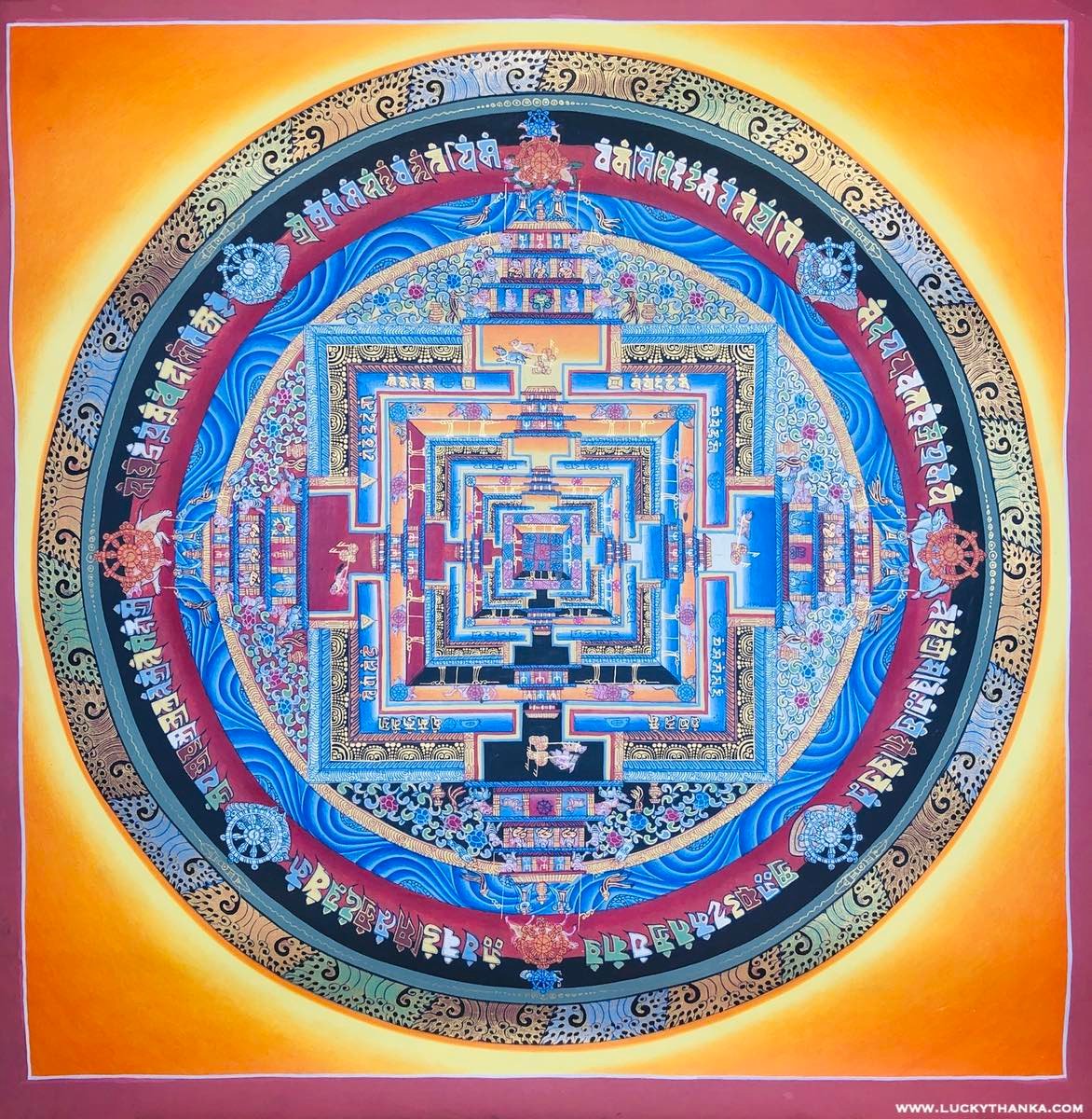 Thangka Painting of a Kalchakra Mandala for Spirituality, Meditation or for your home and family. All Thangka Paintings at Lucky Thanka are genuine hand painted from Nepal by highly skilled lama artists. Painted on cotton canvas using natural stone color and other materials like gold, silver other semi precious minerals. These art can also be a very beautiful wall hanging decoration ideas for your home and office.