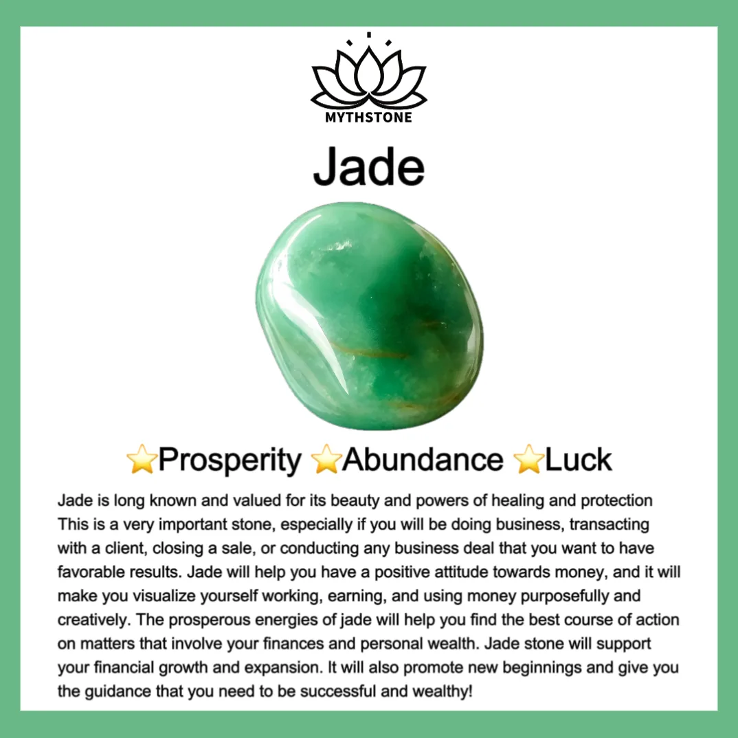 Jade will help you have a positive attitude towards money. and it will make you visualize yourself working. earning. and using money purposefully and creatively. The prosperous energies of Jade will help you find the best course of action on matters that involve your finances and personal wealth. Jade stone will support your financial growth and expansion. It will also promote new beginnings and give you the guidance that you need to be successful and wealthy!