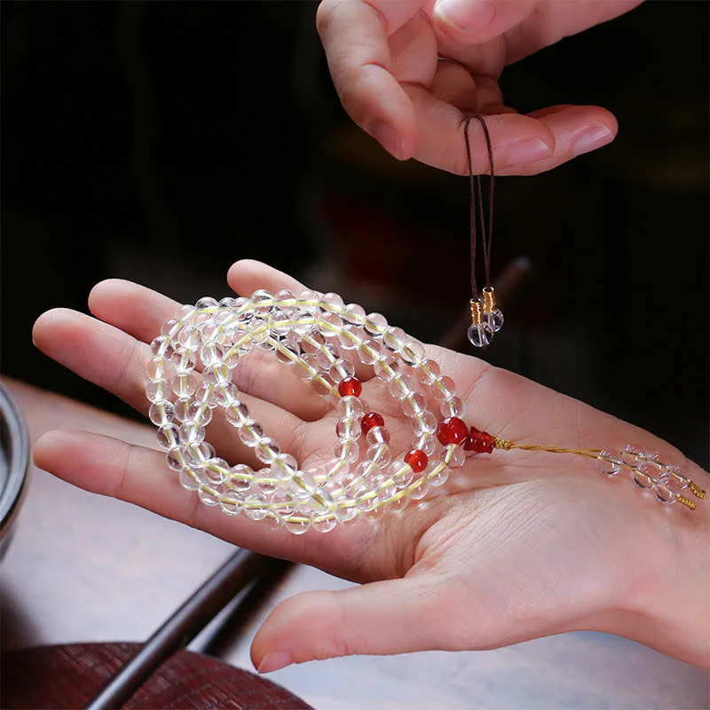 Malas are used for keeping count while reciting. chanting. or mentally repeating a quote or the name or names of a deity. In Tibetan Buddhism. traditionally Malas of 108 beads are used. Doing one 108-bead mala counts as 100 recitations. the extra repetitions are done to amend any mistakes in pronunciation or other faults of recitation.