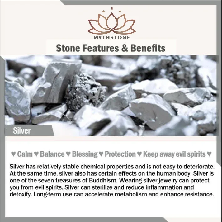 Silver has relatively stable chemical properties and is not easy to deteriorate. At the same time. silver also has certain effects on the human body. Silver is one of the seven treasures of Buddhism. Wearing silver jewelry can protect you from evil spirits. Silver can sterilize and reduce inflammation. detoxify and maintain health. and prolong life. Long-term use can accelerate metabolism and enhance resistance.