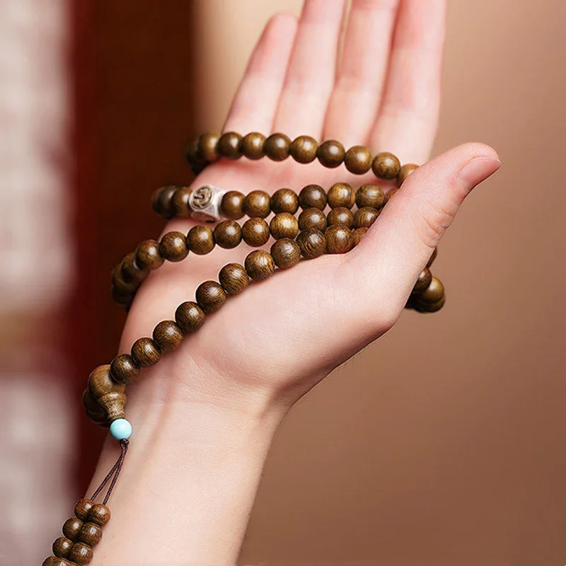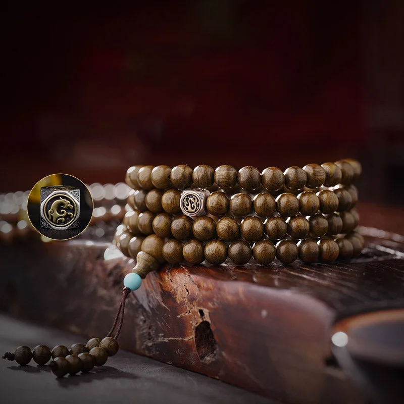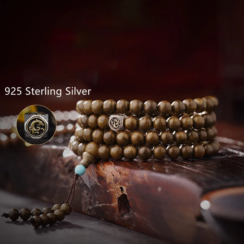 The mala bracelet is paired with natural amber. red agate. and 999 gold handmade accessories. - 925 Sterling Silver Four Symbols: