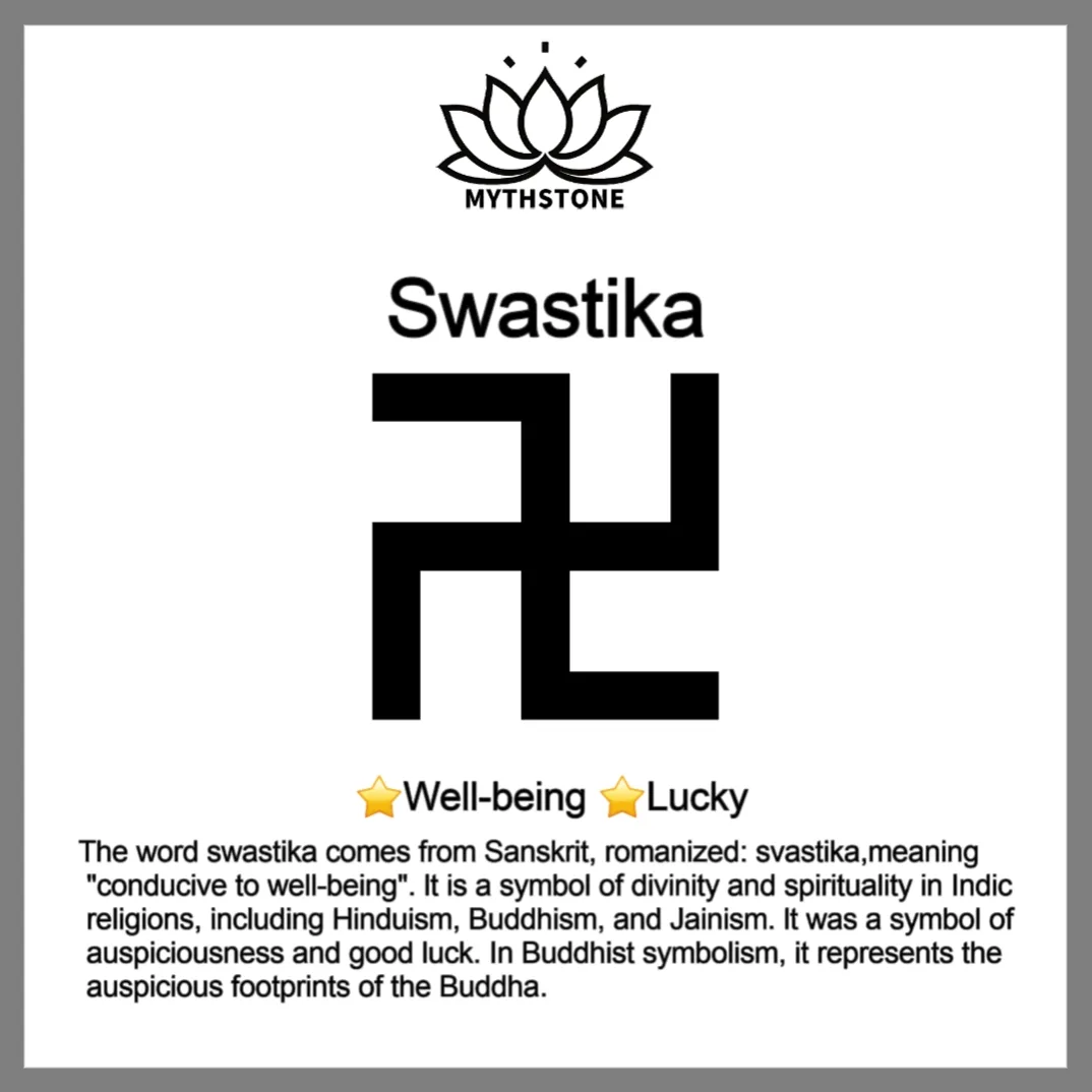 The word swastika comes from Sanskrit: स्वस्तिक, romanized: svastika, meaning “conducive to well-being”. It is a symbol of divinity and spirituality in Indic religions, including Hinduism, Buddhism, and Jainism. It was a symbol of auspiciousness and good luck. In Buddhist symbolism, it represents the auspicious footprints of the Buddha.