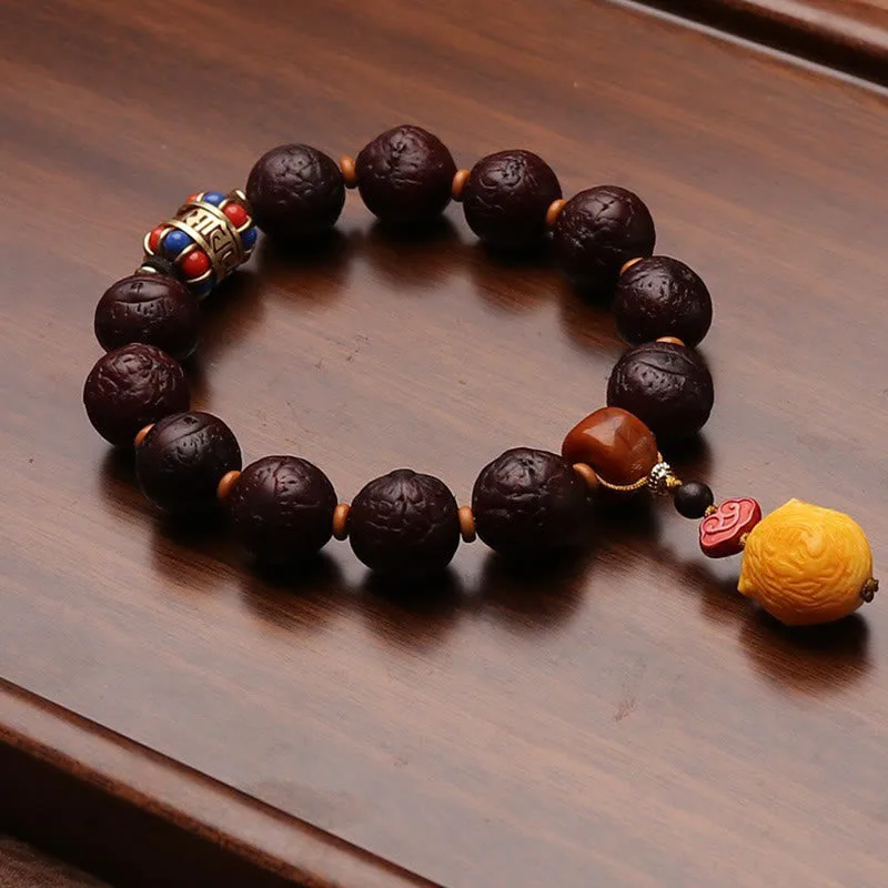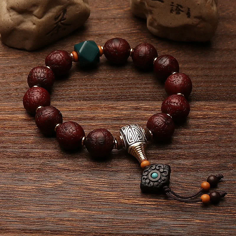 Mythstone unveils the Tibetan Bodhi Seed Agate Bead Wrist Mala. a harmonious blend of enlightenment. protection. and serenity. The “enlightened” Bodhi seeds. revered in meditation practices. pair seamlessly with the calming cinnabar. often used in Buddhist chants. Turquoise adds an aura of purification. strength. and self-acceptance. culminating in a charm that not only graces the wrist but elevates the spirit. A journey of wisdom. balance. and divine connection awaits.