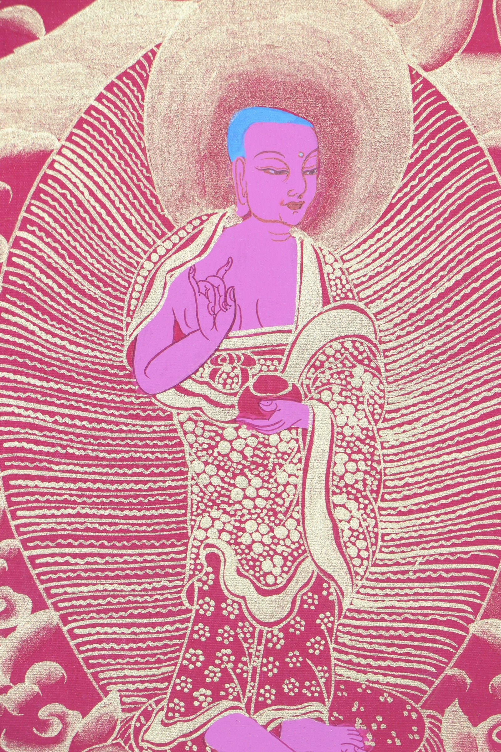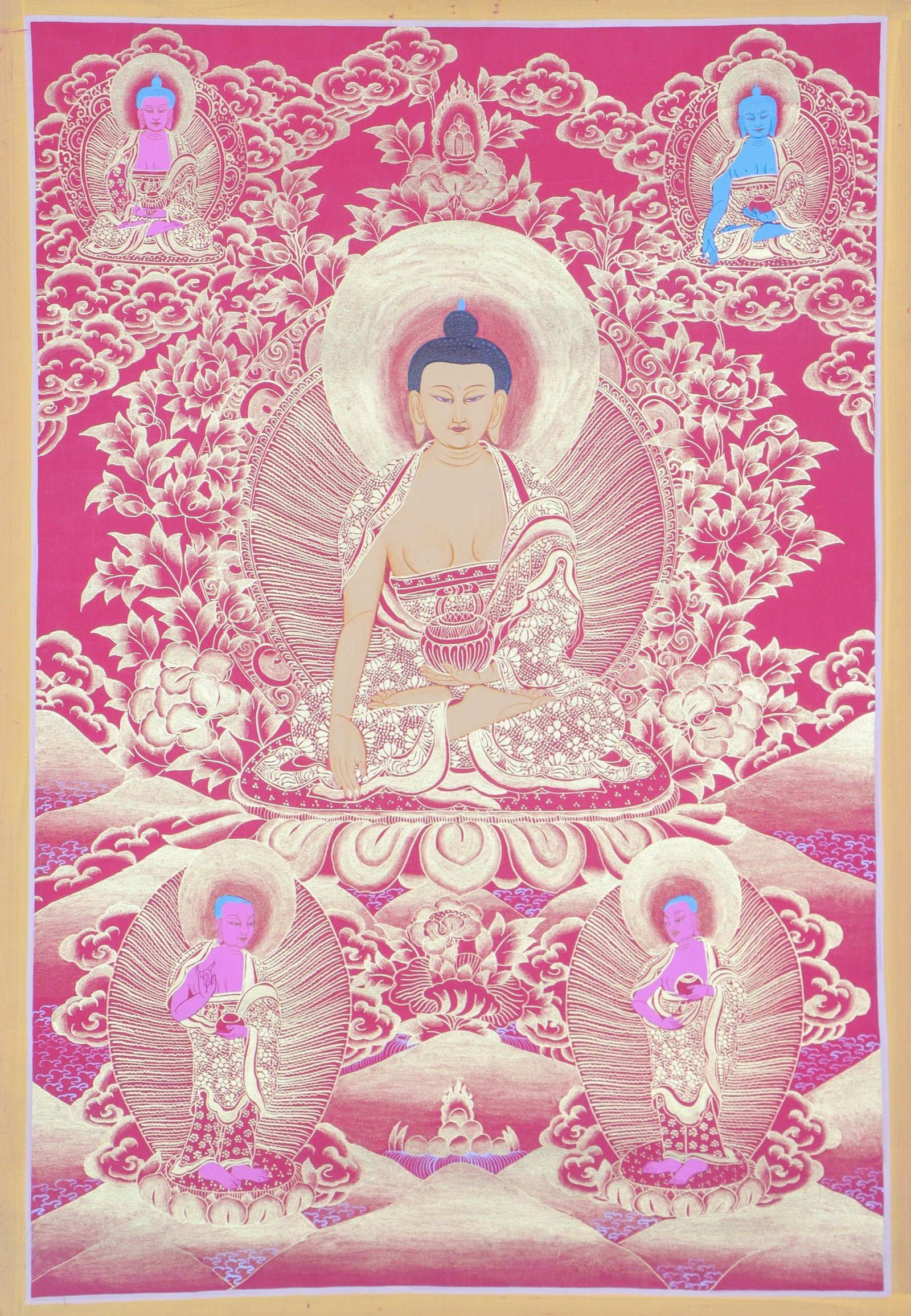 Shakyamuni Buddha Thangkas have a variety of functions in Tibetan Buddhism, from meditation to devotional activities and teachings. This works of art act as visually representational images of the Buddha’s life and teachings, provoking reflection on the path to enlightenment. This Thangka are often seen in monasteries, temples, and homes as objects of veneration and to assist with spiritual practice.