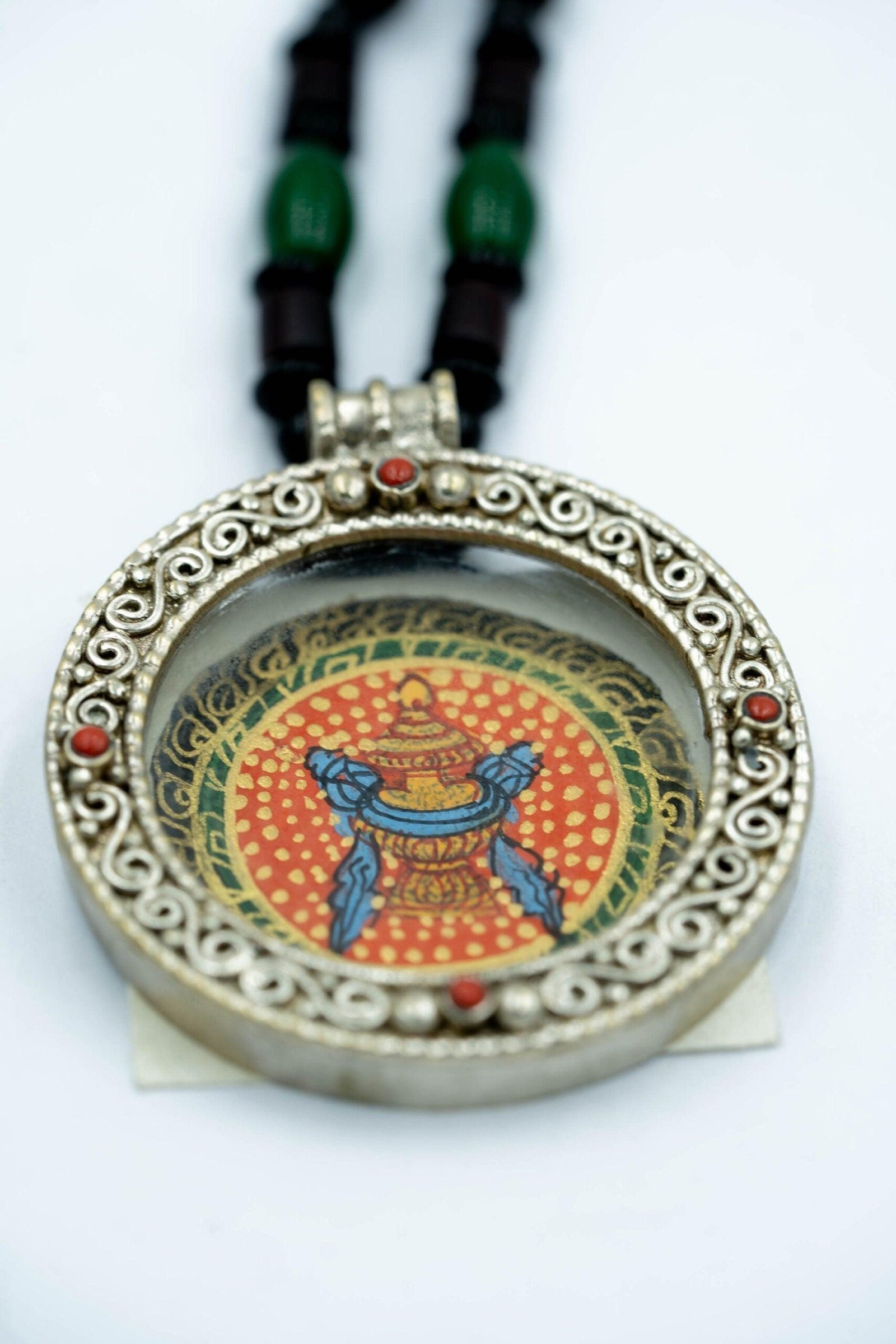 Our handmade thangka painting Now on smallest size also known as Gau / Ghau Thangka. These small Ghau thangka painting on a locket or amulets can easily be worn as jewellery. Choose your favourite Mandala, Buddha and Boddhisattva deities and wear it for protection or spiritual purpose.The thangka painting is painted on cotton canvas using natural stone colours, gold and natural minerals. All these small Thangka paintings are painted by the Nepalese artist with lot of detail work.You can also purchase these beautiful small painting by itself or you can choose to purchase including the handmade amulet or locket. These are metal crafted handmade lockets. This Gau amulet can be made by using different metals – silver, brass, bronze, copper, steel. This Gau Box protects the thangka from turning up, getting affected by moisture, scratch and damages.