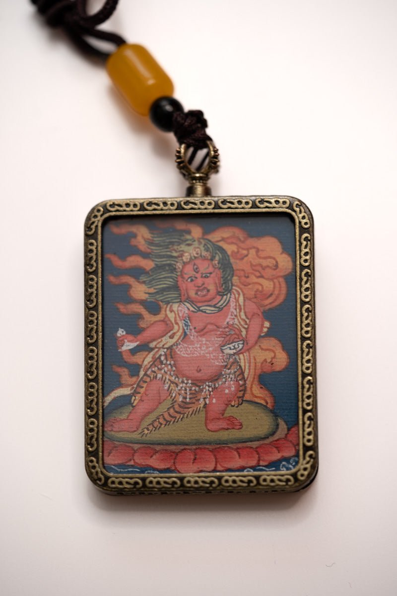 This Troma Nagmo Ghau Thangka Locket embodies the fierce, liberating energy of Troma Nagmo (the Wrathful Black Mother), a powerful dakini in the Chöd lineage of Tibetan Buddhism. She represents the fearless wisdom that cuts through ego and illusion, transforming fear into awakened awareness.