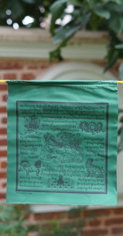 The Wind Horse Prayer Flag is an important part of Tibetan culture and spirituality. It is displayed high up in places like temples and mountain passes, usually hung diagonally between two points. The Wind Horse symbolizes well-being and good fortune, combining the speed of the wind and strength of the horse to transform negative conditions into positive outcomes. Adorned with mantras, prayers, and symbols, these prayer flags also feature a powerful mantra for global harmony and prosperity.